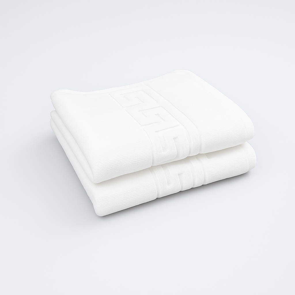 Hochwertiges Hotelhandtuch mit Jacquard-Laubsaugermuster ohne Siebdruck, aus 100 % Baumwolle und für die intensive Nutzung in Ferienunterkünften konzipiert. Dieses 450 Gramm schwere weiße Hoteltuch vereint Eleganz, Saugfähigkeit und Widerstandsfähigkeit und ist ideal für Hotels, Landhäuser, Spas und Ferienwohnungen.