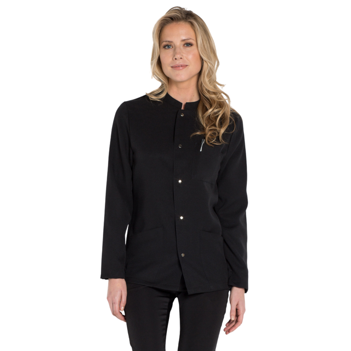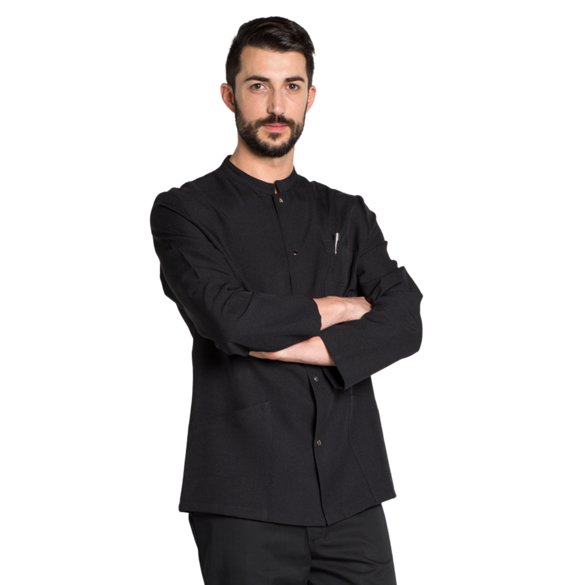 Giacca hospitality unisex nera con collo a fascia e maniche lunghe