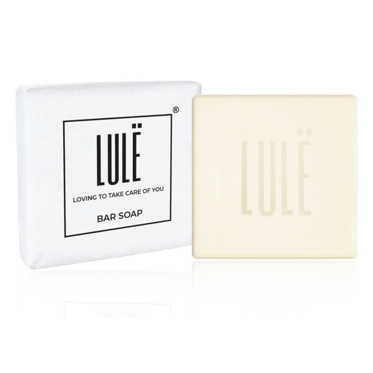 Saponetta solida Lule da 15 g, avvolta in carta e con il logo del marchio impresso in rilievo. Il suo formato compatto e la confezione in carta senza plastica la rendono una scelta elegante e sostenibile per i prodotti di cortesia degli hotel. La fustellatura con il logo conferisce al prodotto un'immagine esclusiva e curata, differenziando l'esperienza dell'ospite rispetto ai saponi da hotel convenzionali. Ideale per hotel boutique, strutture di categoria e HORECA con un'identità di marca definita.