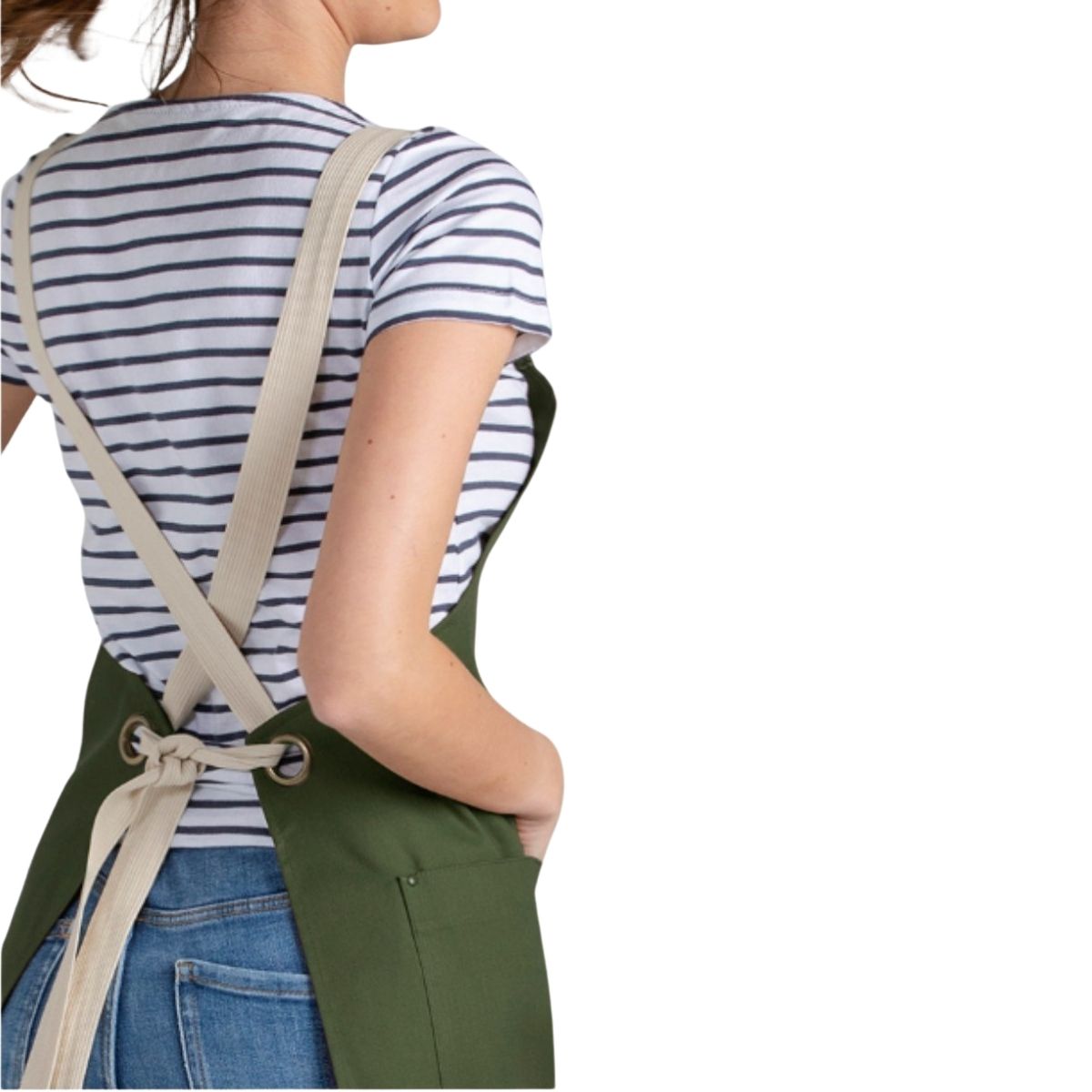 Grembiule con pettorina verde ideale per l'uso in alberghi e aziende ricettive.